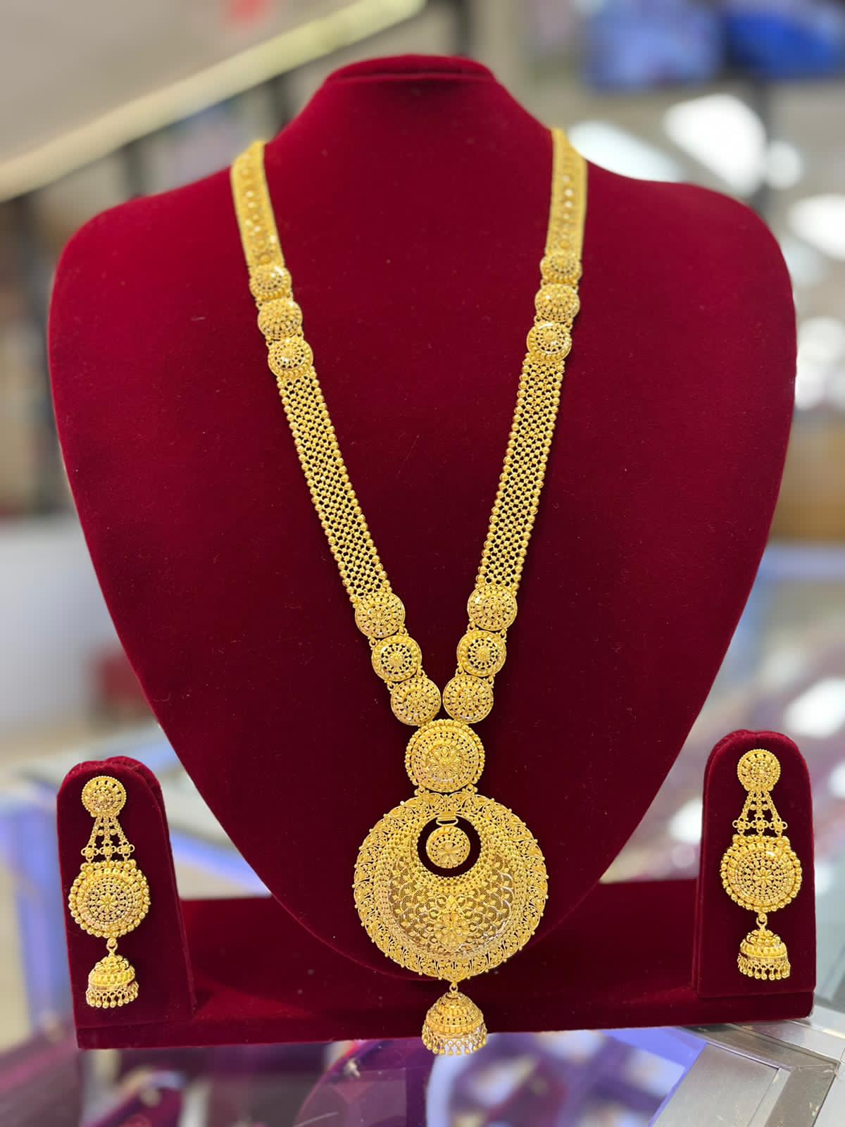 Dip in decadence as you adorn this mesmerising floral and antique Necklace set crafted in 22 karat yellow gold